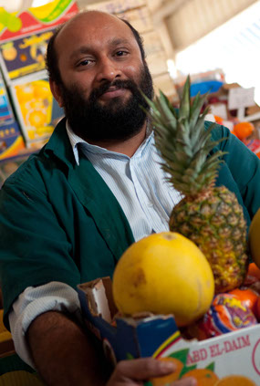 It was a discovery to find these beautiful faces from within the darkness of the market. Suddenly when I put light on them, they turned into real people with beautiful faces from interesting places. All of them were from abroad, mostly India and Pakistan and a few Jordanians and Omani’s. Each time I shot them I understood more about them, although there was no common language. They were in Abu Dhabi, away from their, children, wives, community and when I saw them lit up, they became fathers, brothers and husbands and not just fruit vendors.